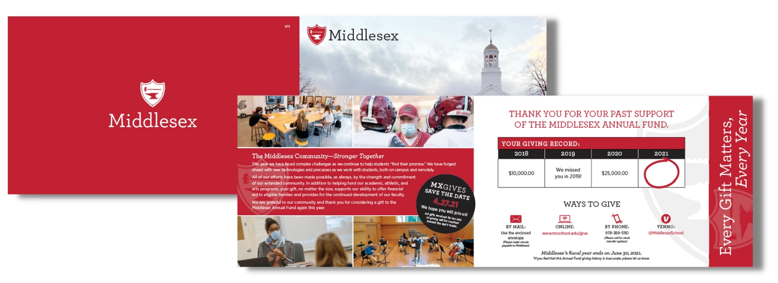 With these data points, we designed a letter with an outer envelope that focused on imagery from their “decade”. We personalized the letter by their cohort, implementing paragraphs that spoke directly to each alumni’s decade.