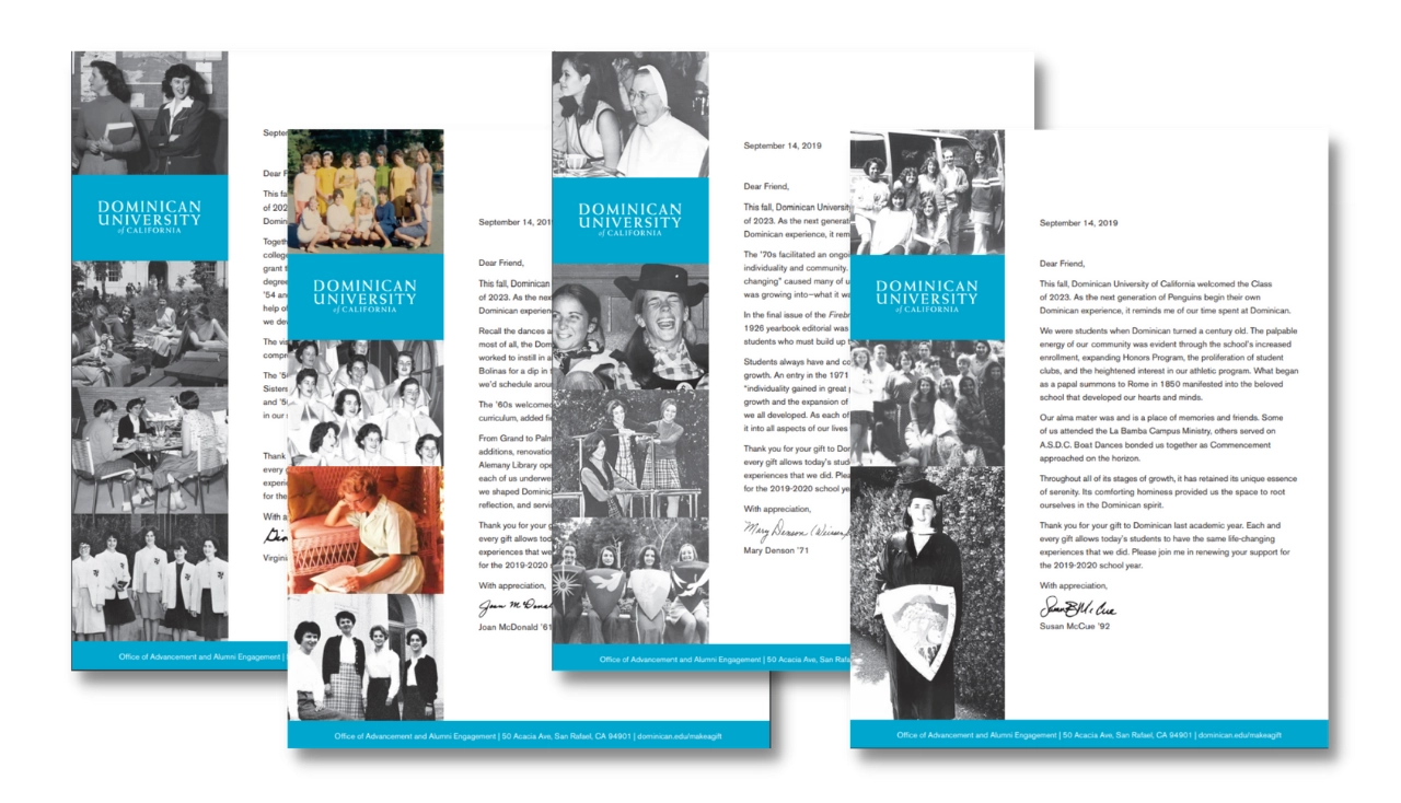 Earlier in this post, we shared that Dominican University of California achieved an increase of 39% of dollars raised with their Decades Appeal using variable data.